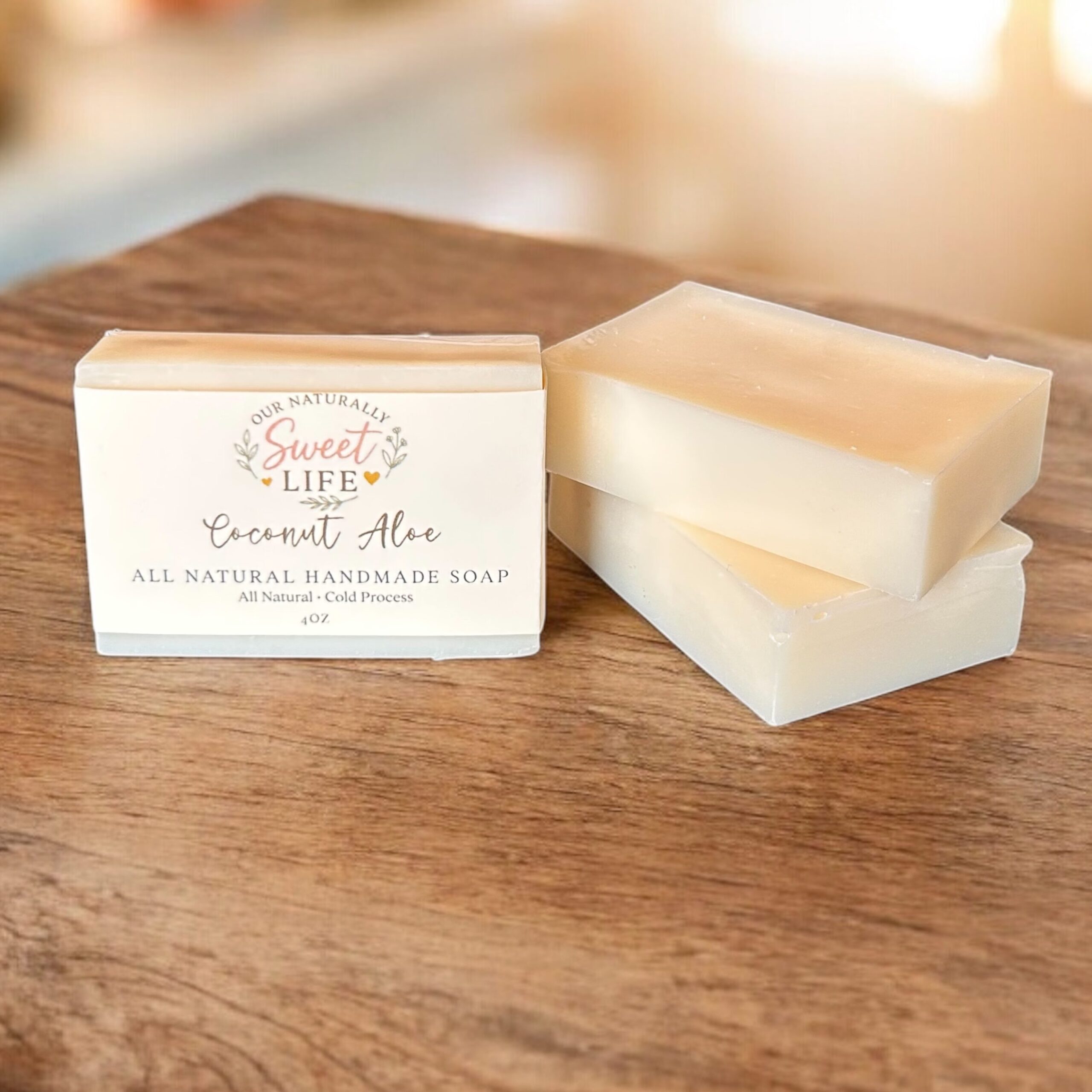 My Coconut Aloe Soap is handcrafted in small batches with real aloe vera juice and a blend of rich, skin-loving plant oils. The result is a creamy, luxurious lather that gently cleanses while helping skin feel soft, smooth, and happy.